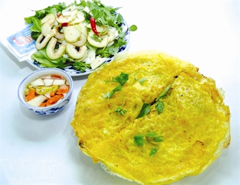 Le banh Khoai est plus petit, mais contient de nombreux ingrédients. La garniture comprend crevettes, hachis frit de porc, maigre de porc, germes de soja frais, oeufs de poule et oignon vert. Le Banh Khoai est servi avec une salade composée d’herbes aromatiques, de tranches de banane verte, d’une sauce spéciale à base de farine de riz, de sauce de soja épaisse, de sésame frit, et de foie de porc haché.