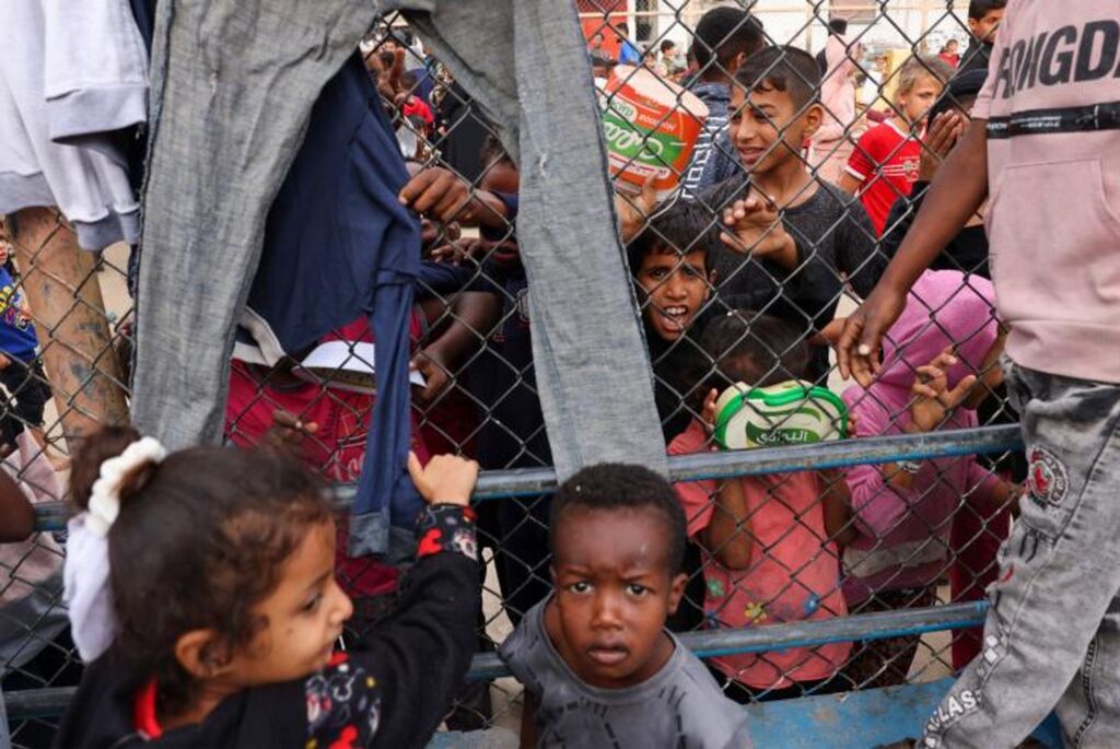 | Des enfants déplacés attendent la distribution de petits déjeuner dans un camp de réfugiés palestiniens à Rafah, dans le Sud de la bande de Gaza, le 12 novembre. |