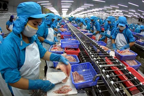 | Une chaîne de traitement de pangas à la Sarl des technologies des produits aquatiques du Sud à Cân Tho. |