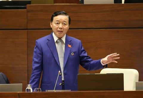 | Le ministre des Ressources naturelles et de l'Environnement, Trân Hông Hà, s'exprime devant l'Assemblée nationale, le 18 juin. |