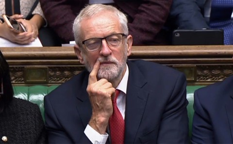 | Le dirigeant du Labour, Jeremy Corbyn, siégeant à la Chambre des Communes. |