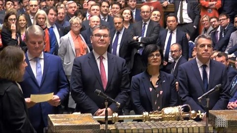 | L'annonce du résultat du vote sur l'accord de retrait de l'UE à la Chambre des communes, à Londres le 20 décembre 2019. |