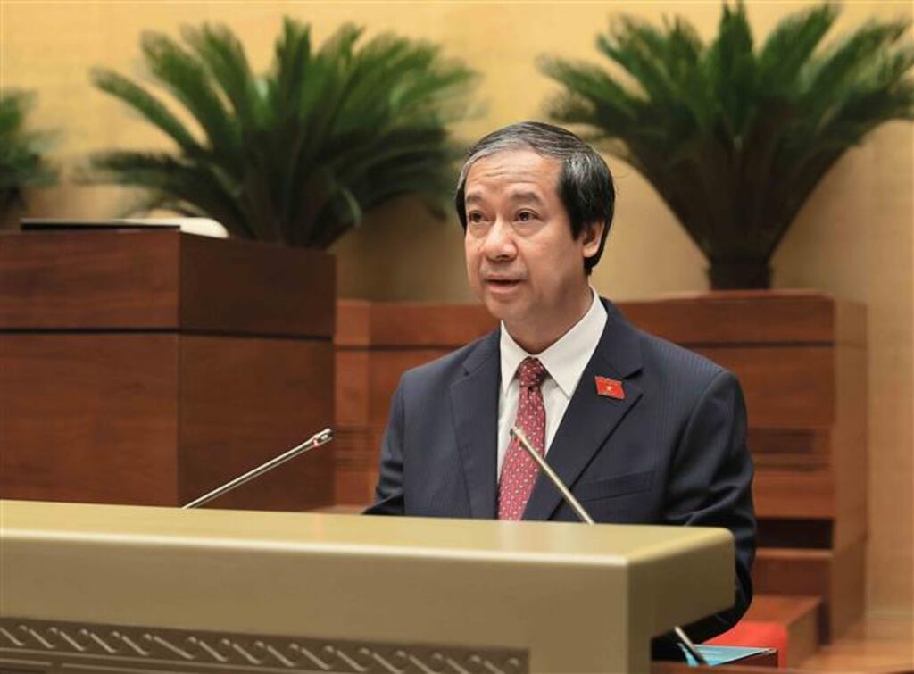 | Le ministre de l'Éducation et de la Formation, Nguyên Kim Son, présente un rapport sur le projet de résolution de l'Assemblée nationale sur la généralisation de l'éducation préscolaire pour les enfants de 3 à 5 ans. |