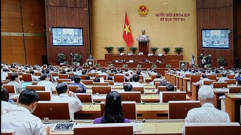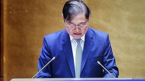 | Phan Xuân Dung présente un rapport sur le projet de lois d’amendement sur les chemins de fer, lors de la 3e session de la XIVe législature, le 29 mai à Hanoï. |