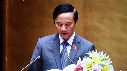 | Nguyên Khac Dinh présente un rapport sur le programme d’élaboration des lois et ordonnances pour 2018, la modification du programme pour 2017 aux députés, le 23 mai à Hanoï. |