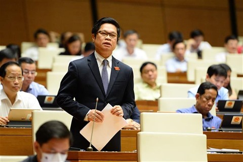 | Le député Vu Tiên Lôc (de Hanoï) prend la parole lors de la 3e session de la XVe Assemblée nationale, le 10 juin. |