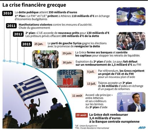 Après s'être entendu en deux semaines avec les représentants des créanciers du pays sur les grandes lignes des réformes à consentir pour obtenir une nouvelle aide internationale de trois ans, d'un montant d'environ 85 milliards d'euros, le gouvernement de gauche radicale d'Alexis Tsipras a déposé au parlement dans la nuit du 11 au 12 août le projet de loi issu de l'accord "technique" conclu le 11 août.