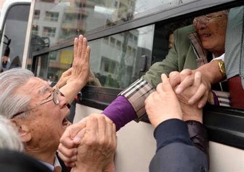 | Des familles nord et sud-coréennes, séparées par la guerre de Corée, se disent à nouvel au revoir, après une réunion au Mont Kumgang, le 22 octobre en Corée du Nord. |