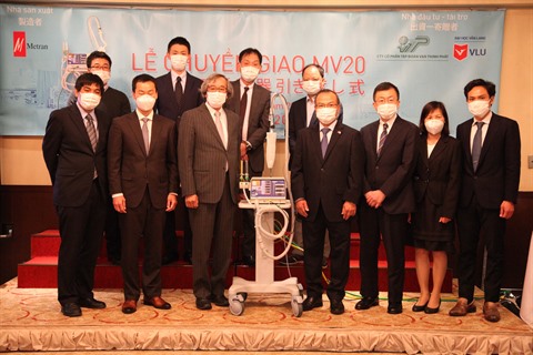 | Cérémonie de remise de deux premiers respirateurs fabriqués par la SARL japonaise Metran au Vietnam tenue le 20 avril à Tokyo. |