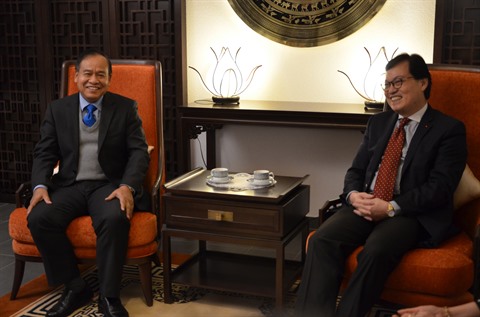 | L’ambassadeur Duong Chi Dung (droite) et son homologue lao Khan-Inh Khitchadeth, à Genève, le 17 février. |