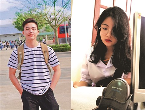 | Trung Kiên, ancien étudiant de l’Académie des finances, et Kim Anh, étudiante du Collège central de pharmacie de Hai Duong. |