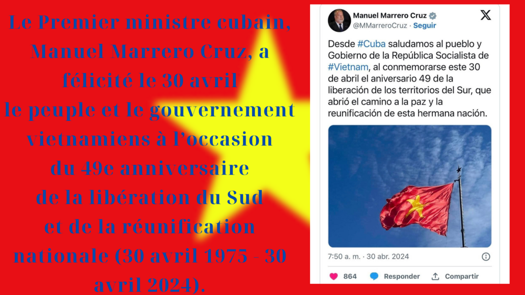 Dans un message publié sur des réseaux sociaux, le chef du gouvernement cubain a souligné que l’événement avait ouvert la voie à la paix et à la réunification du Vietnam.