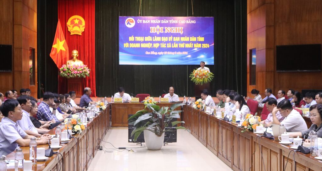 | Dialogue entre les autorités de la province de Cao Bang et les entreprises et coopératives locales. |