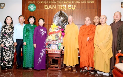| Les autorités de Hô Chi Minh-Ville ont rendu visite le 16 mai au Conseil d’administration de l’Église bouddhique municipale. |