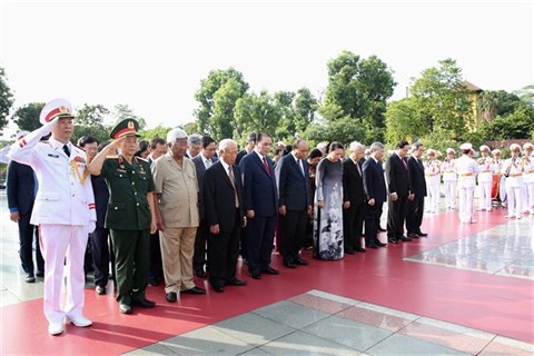 La gerbe de fleurs déposée au mémorial des martyrs pour la Patrie portait l’inscription "Se souvenir à jamais des héros morts pour la Patrie", et l'autre portant l'inscription "Se souvenir à jamais du grand Président Hô Chi Minh" a été déposée devant son mausolée.