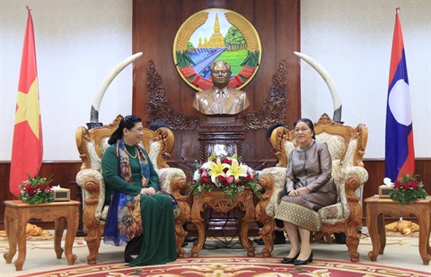 | La vice-présidente de l’AN du Vietnam Tong Thi Phong (gauche) et la présidente de l'Assemblée nationale du Laos, Pany Yathotou. |