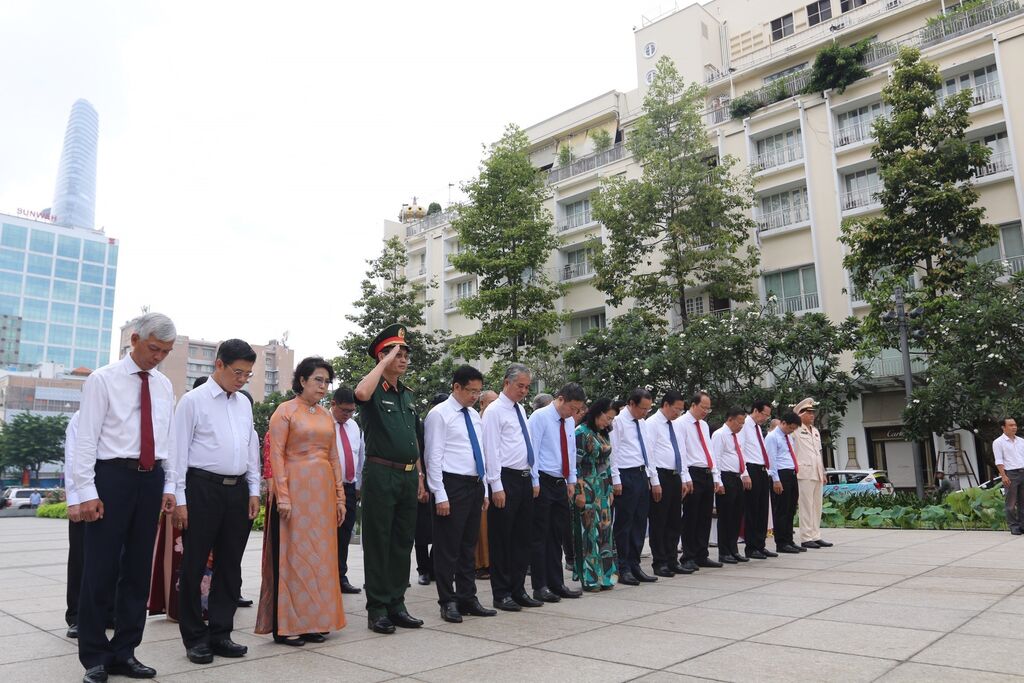 Toujours jeudi matin 31 août, à Hô Chi Minh-Ville, une délégation de dirigeants locaux, conduite par Nguyên Van Nên, membre du Politburo, secrétaire du Comité municipal du Parti, est allée rendre hommage aux Présidents Hô Chi Minh et Tôn Duc Thang à l'antenne du Musée Hô Chi Minh dans le 4e arrondissement.