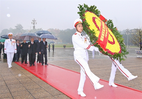 | Une délégation du Parti, de l'État, de l'AN, du gouvernement et du FPV est allée le 14 février rendre hommage au Président Hô Chi Minh en son mausolée à Hanoi. |