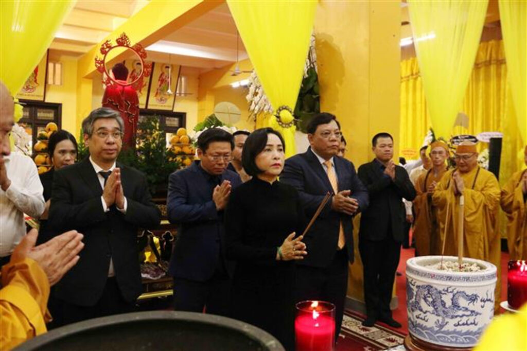| Des dirigeants rendent hommage au vénérable Thich Tri Tinh. |