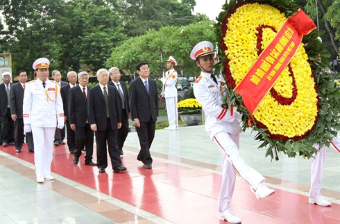 Les dirigeants ont déposé au pied du Mémorial une gerbe de fleurs portant l'inscription "Se souvenir pour toujours des héros morts pour la Patrie". Ils sont également allés rendre hommage au Président Hô Chi Minh en son mausolée où ils ont déposé une gerbe de fleurs portant les mots "Se souvenir pour toujours du grand Président Hô Chi Minh".