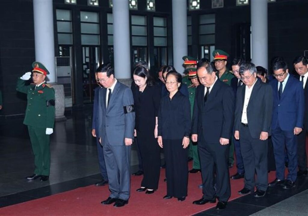 La délégation du Comité central du Parti, conduite par la membre du Politburo, membre permanente du Secrétariat du Comité central du Parti, cheffe de la Commission de l’organisation du Comité central du Parti, Truong Thi Mai, a été la première à se recueillir devant le cercueil.