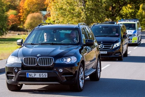 | La délégation nord-coréenne arrive à la Villa Elfvik où ont lieu les discussions avec une délégation américaine, le 5 octobre à Lidingo en Suède. |