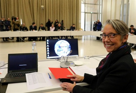 | La ministre française des Transports Elisabeth Borne avant une réunion avec les syndicats de la SNCF, le 5 avril à Paris. |