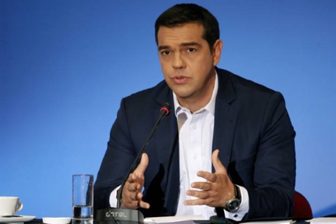 | Le Premier ministre grec Alexis Tsipras lors d'une conférence de presse à Thessalonique, le 11 septembre. |