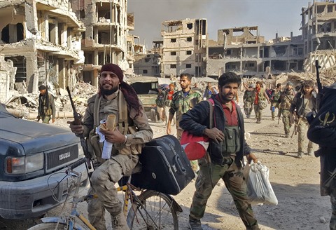 | Les soldats syriens à Deir Ezzor après avoir libéré cette ville de l’EI, le 3 novembre. |
