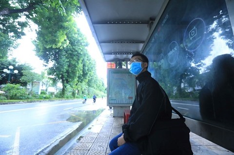 | Un homme attend le bus à une station dans la rue Giang Vo, à Hanoï. |