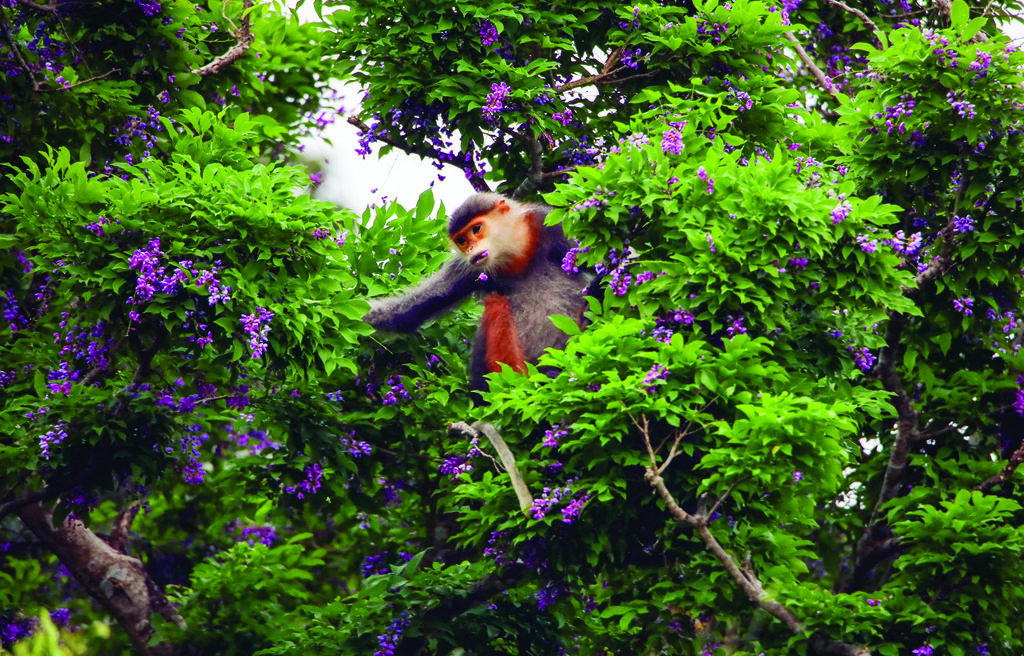 | Le douc à pattes grises est inscrit dans la liste des espèces en danger critique d’extinction du Vietnam. |