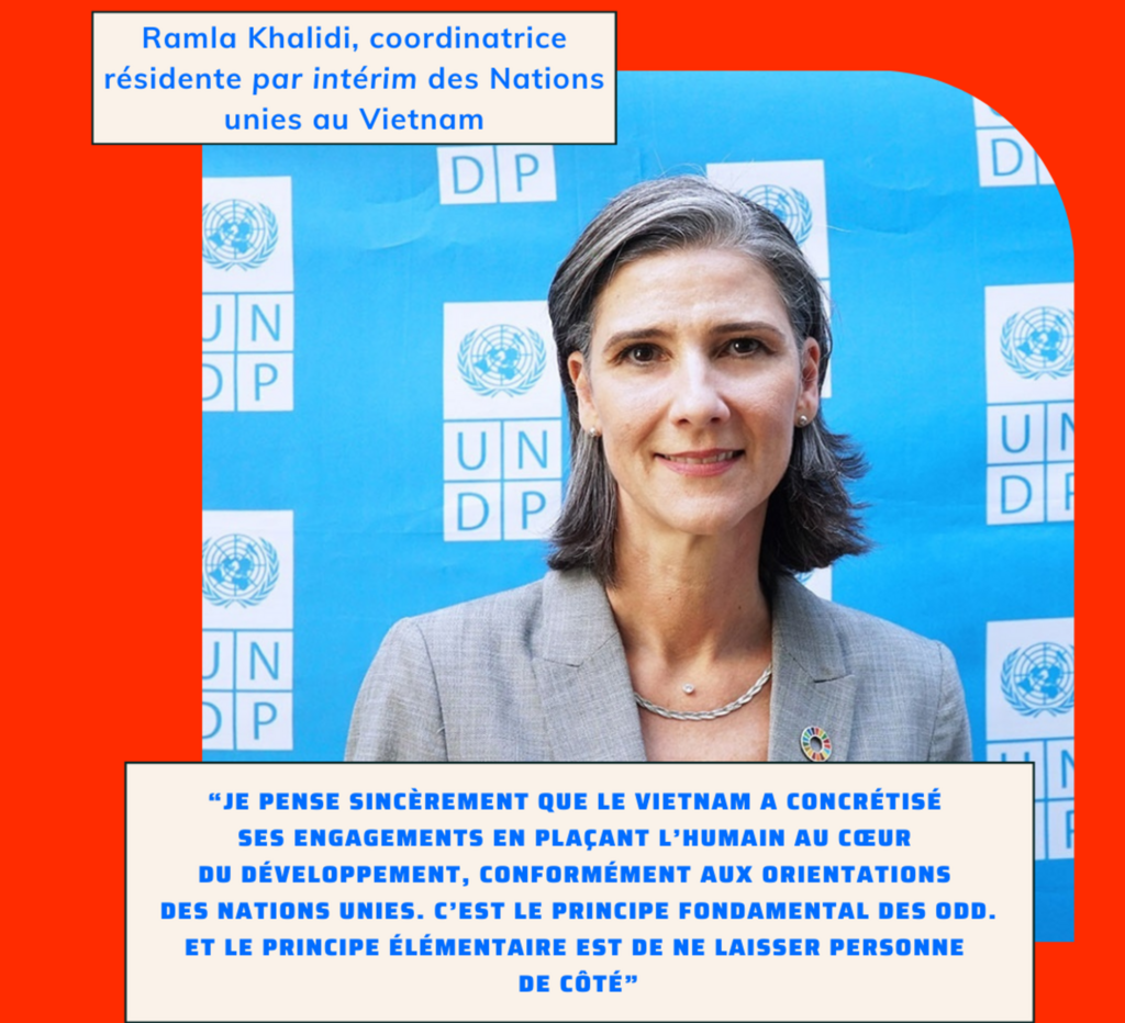 Mme Khalidi a également salué l’initiative du Vietnam, en tant que membre du Conseil des droits de l’homme, de proposer et rédiger une résolution en l’honneur du 75e anniversaire de la Déclaration universelle des droits de l’homme et du 30e de la Déclaration et du Programme d’action de Vienne. “Je pense sincèrement que le Vietnam a concrétisé ses engagements en plaçant l’humain au cœur du développement, conformément aux orientations des Nations unies. C’est le principe fondamental des ODD. Et le principe élémentaire est de ne laisser personne de côté”, a-t-elle estimé.