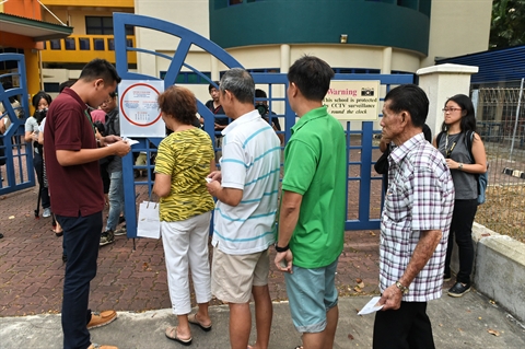 | Dans un bureau de vote, le 11 septembre à Singapour. |