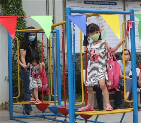 | Retour des élèves de l'école maternelle Anh Sao à Hanoï, le 11 mai. |