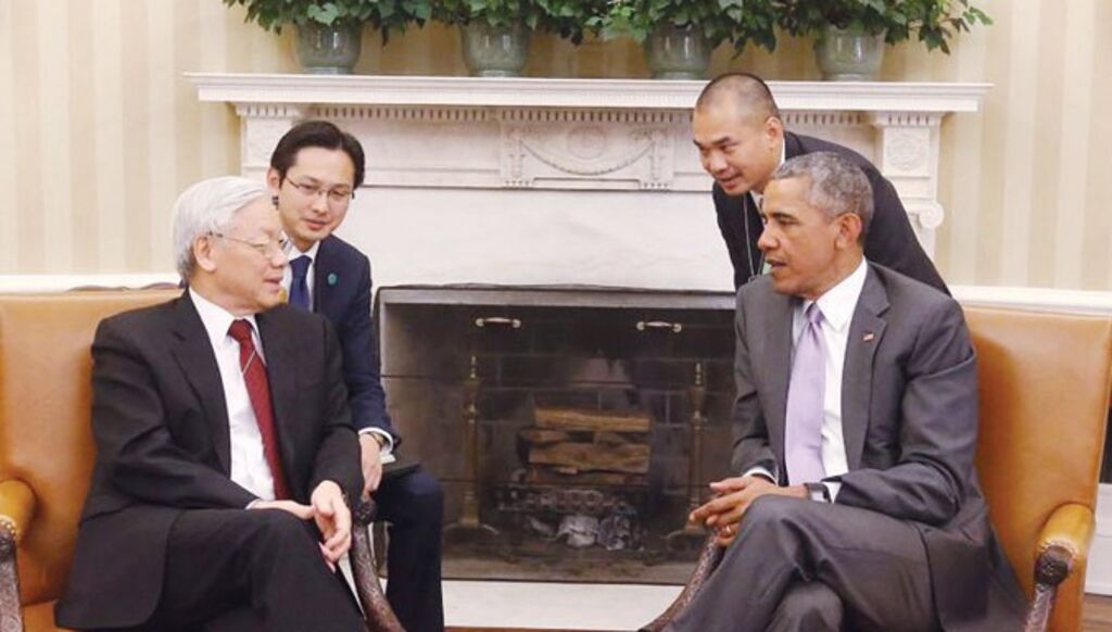 "Nous venons de convenir que dans un avenir proche, nous dirigerons les organes et les peuples des deux pays pour développer des relations intégrales sur les plans politique, diplomatique, économique, commercial, scientifique, éducatif, de formation, de défense et de sécurité, de santé, d'environnement et face au changement climatique. Nous nous coordonnerons dans les domaines multilatéraux, y compris les relations de défense et de sécurité", a déclaré le secrétaire général du PCV, Nguyên Phu Trong, le 7 juillet 2015 à la Maison Blanche aux États-Unis.