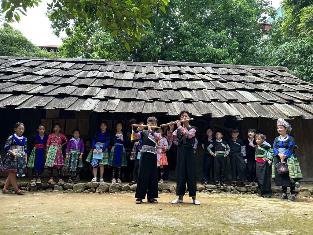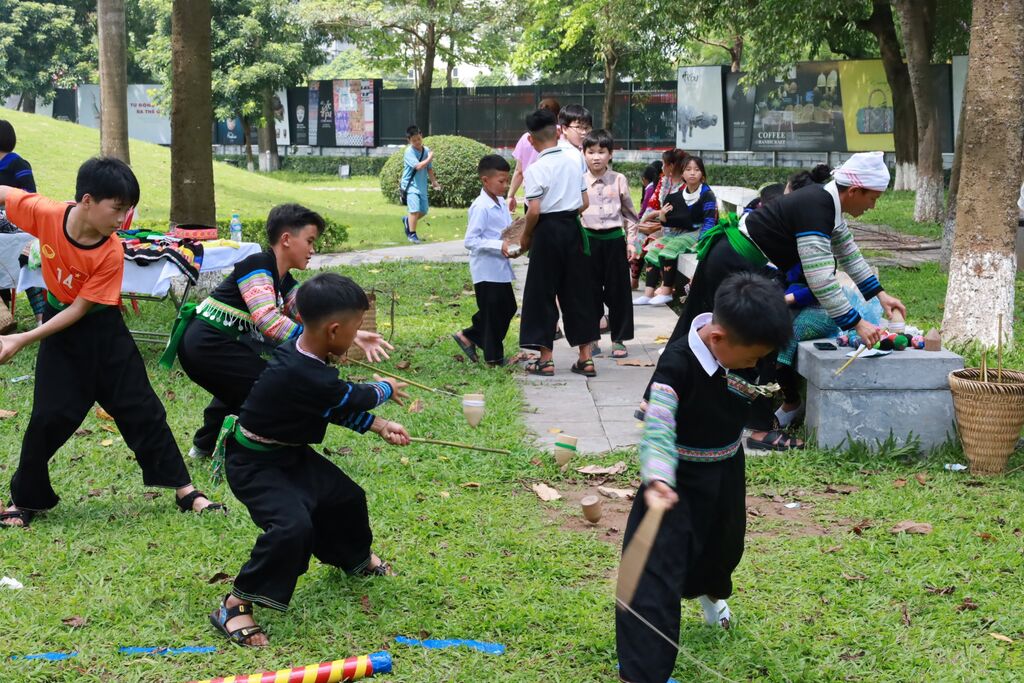 Des enfants H'mông venus de Suôi Giàng, district de Van Chân, province de Yên Bái (Nord), présentent des spectacles folkloriques et des jeux traditionnels de leur ethnie. Les visiteurs ont l'occasion de s'immerger dans la danse khèn (flûte de Pan) des H'mông et d'assister à des jeux populaires tels que le lancement de pao (petit ballon en tissu) ou le pousser de bâton, etc. De plus, les enfants H'mông racontent des histoires sur le quotidien ainsi que les activités en classe dans la haute région. Cette activité aide les enfants citadins à mieux comprendre la culture et la vie de leurs petits camarades venus des montagnes.