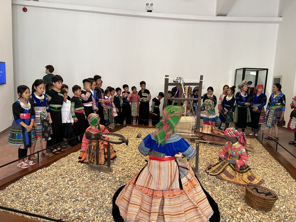 | Enfants H'mông visitant l'espace d'exposition du Musée d'ethnographie du Vietnam. |
