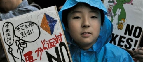 | Un enfant manifeste contre le nucléaire. Après la catastrophe de Fukushima, les jeunes Japonais de la région ont pris du poids par manque d'exercice face à la peur des radiations. Photo : AFP/VNA/CVN |