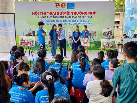 | Des élèves lors du concours "Petits ambassadeurs de l'environnement", à Hô Chi Minh-Ville. |