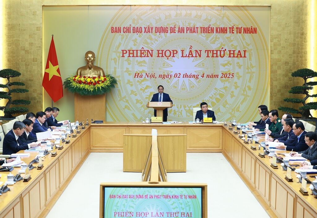 | Le Premier ministre Pham Minh Chinh préside la 2e session du Comité de pilotage pour l’élaboration du projet de développement de l’économie privée, le 2 avril 2025. |