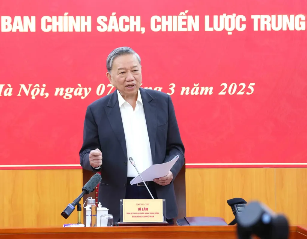 Le 7 mars 2025, le secrétaire général Tô Lâm a tenu une séance de travail avec la Commission centrale des politiques et des stratégies sur le développement du secteur privé. À cette occasion, il a souligné la nécessité d’une stratégie claire pour le développement du secteur privé, adaptée au niveau de développement actuel de l’économie et au nouveau contexte géoéconomique et géopolitique du pays.