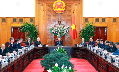 | Le PM Nguyên Xuân Phuc (centre) a reçu le 9 mars à Hanoï une délégation d’entrepreneurs américains conduite par Michael W. Michalak, vice-président du Conseil des affaires États-Unis - ASEAN. |