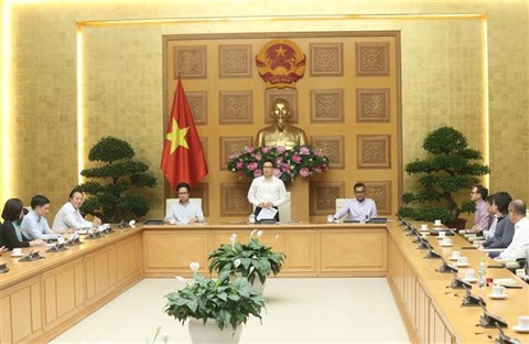| Réunion entre le vice-Premier ministre Vu Duc Dam (debout) et le Conseil des entreprises pour le développement durable, le 23 juin à Hanoï. |