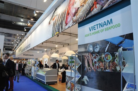 | Un stand vietnamien lors de la Foire mondiale des produits aquatiques, en juin 2016 en Belgique. |