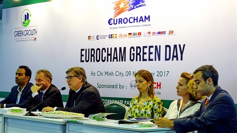EuroCham GreenBook, réalisé par l'Eurocham, est une publication qui donne un aperçu des opérations dans les domaines des énergies renouvelables, du traitement des déchets, de la construction d’une ville intelligente et des travaux "verts". Il présente les meilleures pratiques et solutions pour améliorer l'environnement des affaires vert au Vietnam.