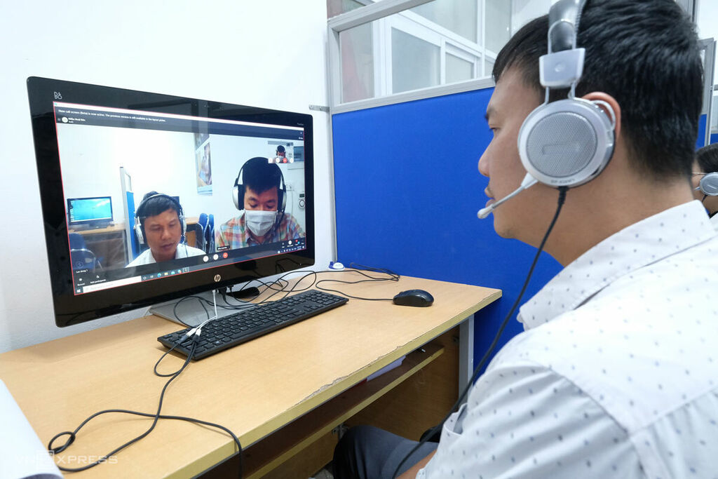 | Une séance d'interview à distance des candidats du Centre de services pour l'emploi de Hanoï. |