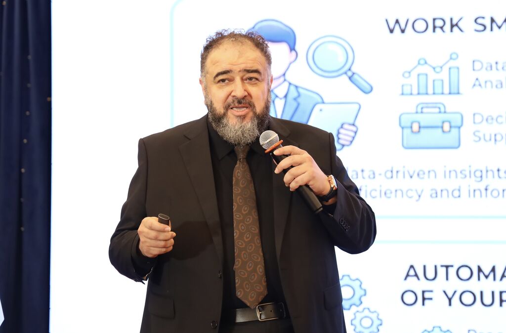 | Le Professeur agrégé Ali Al-Dulaimi, directeur du Département d'informatique et de technologie de BUV, s'exprime lors du séminaire. |