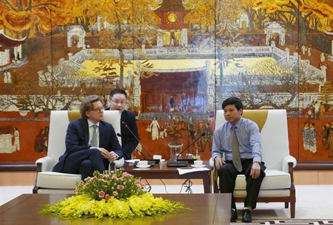 | L’ambassadeur suédois au Vietnam, Pereric Hogberg (gauche) reçu par le vice-président du Comité populaire municipal de Hanoï, Ngô Van Quy. |