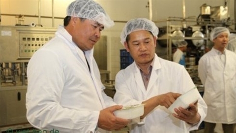 | L'ambassadeur Doàn Xuân Hung (gauche) visite certains établissements de production des Vietnamiens en Allemagne. |