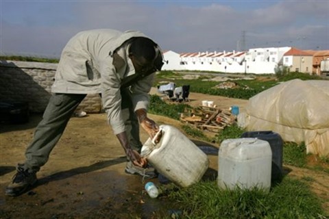 | Un travailleur immigré dans une plantation de fraises près de Huelva, en Espagne. |